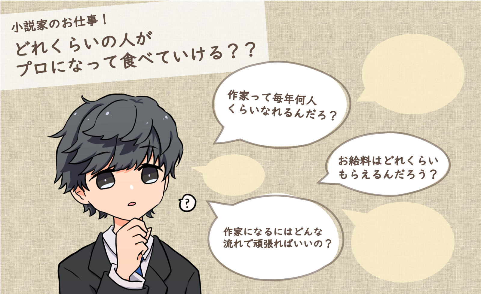 プロの小説家になるとどんな仕事をして、どういう風に給料がもらえるのかや、毎年何人の作家さんがプロになってるのかを記事にしました。作家やシナリオライターを目指す人は…